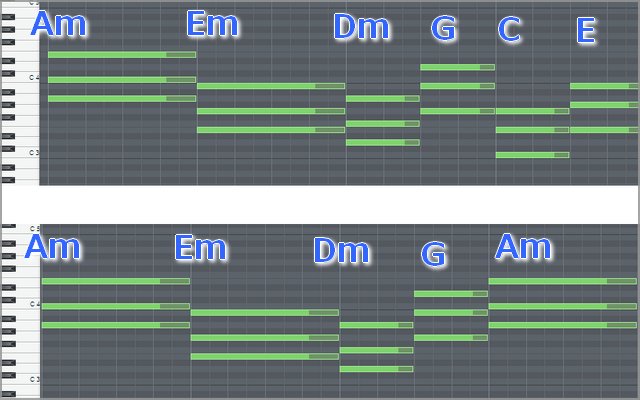 またAm-Emの進行は、管理人的にはAm-Fを連発して飽きてきたときに使っています(自社コンテンツ・依頼があったとき、どちらも)。
