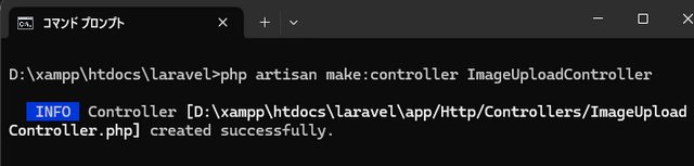 artisanコマンドで、アップロード機能のコントローラを作成する