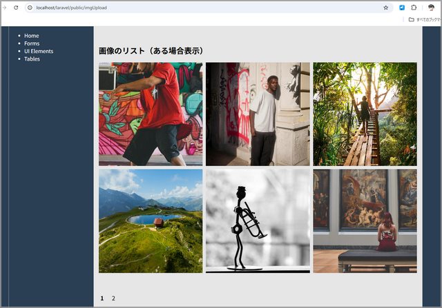 内容的には『assetでcss/js読み込む』『送信先{{ route('img.store') }}のフォーム設置』『返ってきた画像リストをforeachで回す・lightbox用にdata-lightbox="gallery"をつける』『ページネーション』といった感じです。