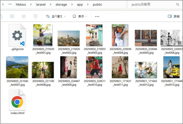 アップロードした画像はstoreAsでpublicを指定したところ『ルート/storage/app/public』以下に保存。